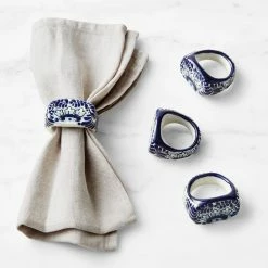Crafted according to Talavera de Pueblatradition by one of Mexico’s premier ceramic makers, our Azulete napkin rings feature a classic design from the 19th century. Each piece is made from high-fired ceramic, handpainted with feathered cobalt designs and finished with a clear, protective glaze.