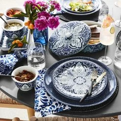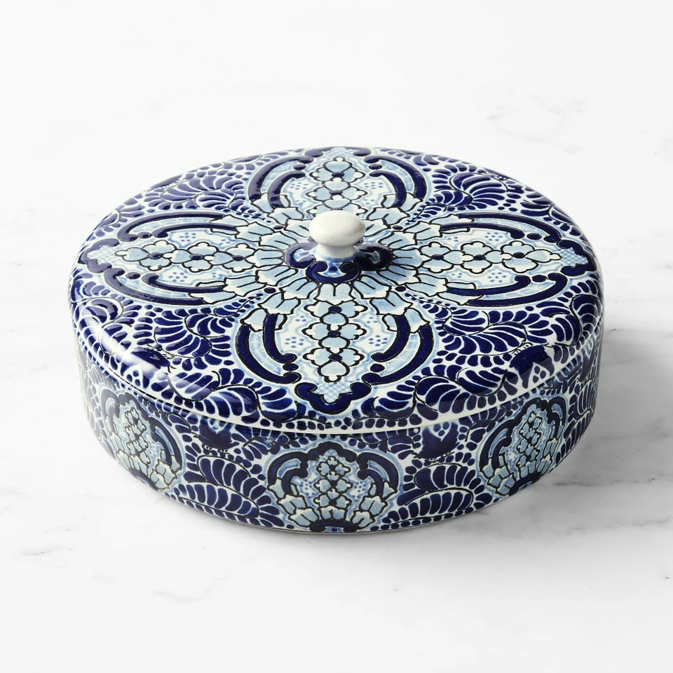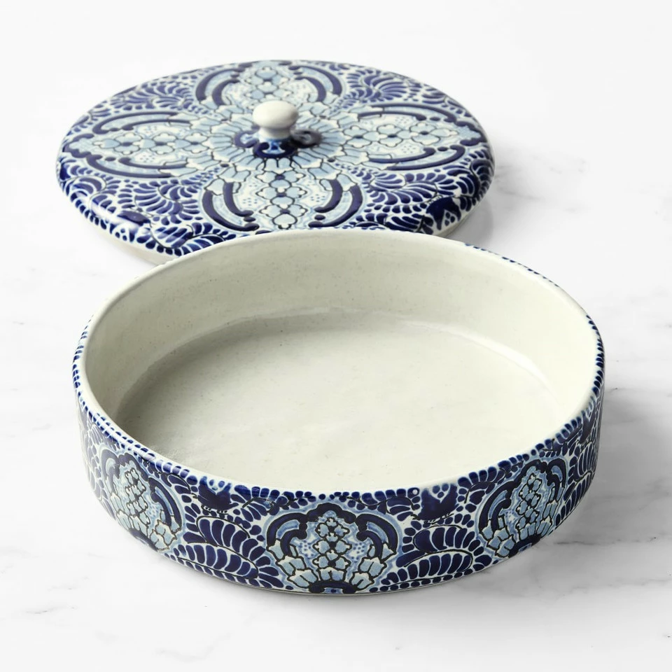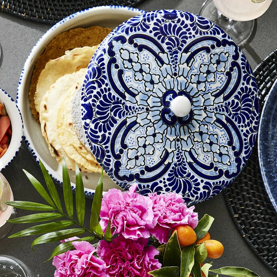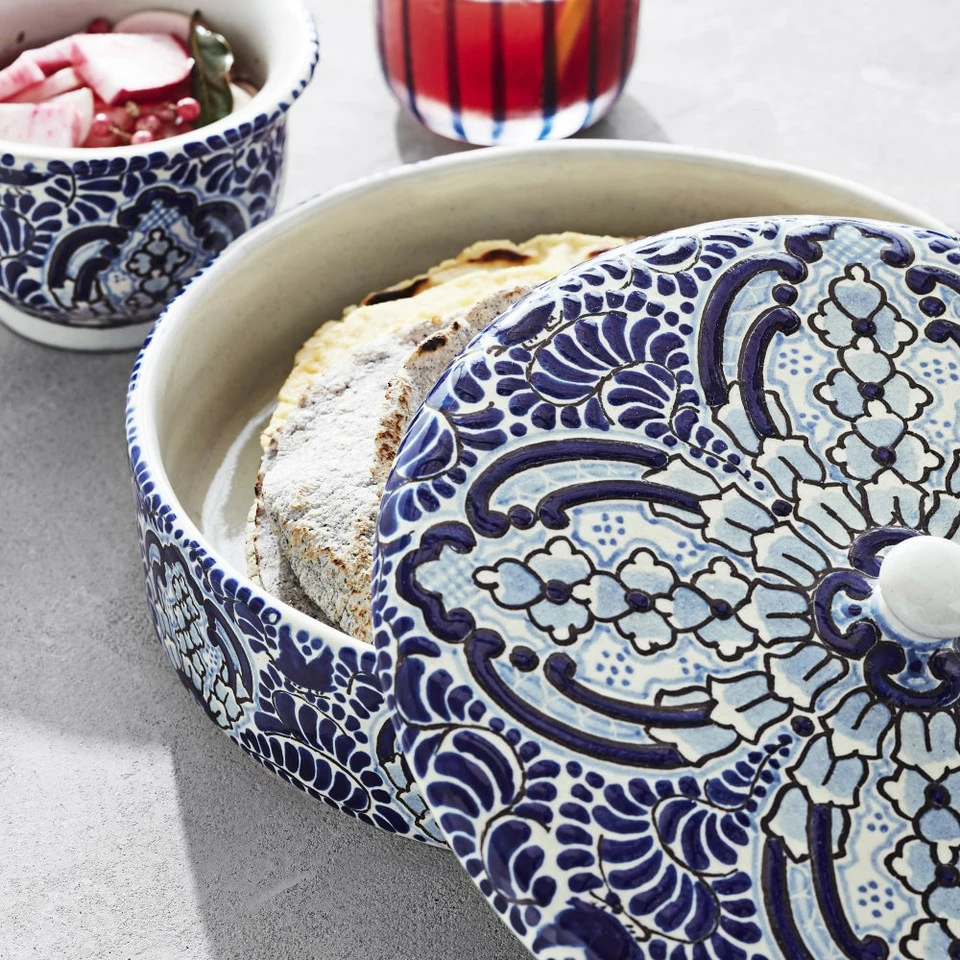 Handmade by Mexican artisans, our stunning glazed Azulete collection is inspired by Talavera de Puebla, a colourful Mexican and Spanish pottery tradition that began in the Spanish colonial era. The embossed cobalt blue-centric design is outlined in black with fine blue details. The vibrant pieces add warmth to everyday and special-occasion entertaining.