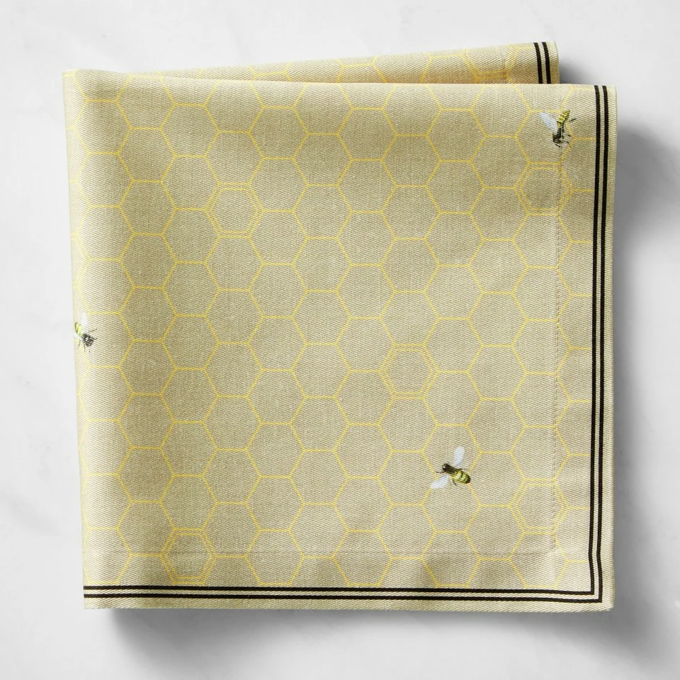 Tuscany is renowned for both its millefiori honey and premium textiles, which is why it’s so fitting that these napkins are woven for us at a family-owned mill in Florence, Italy. Our cotton twill napkins are expertly printed with a flax-hued honeycomb pattern, abuzz with colourful bees.