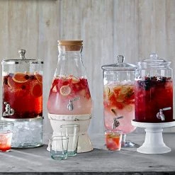 Serving beverages is a breeze with this glass dispenser, which lets everyone help themselves to fresh juice, water, iced tea, sangria or other refreshments.