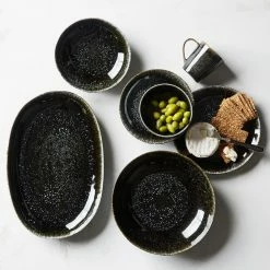 Jewel-hued reactive glazes make this stoneware serving bowl a work of ceramic art – and a brilliant choice for family meals and casual entertaining. During firing, the mineral-infused glazes pool, deepen and diffuse to create ombré shading, drizzles and painterly splashes that are enhanced by a high-gloss finish. Variations in craftsmanship give each bowl unique shape and colour.