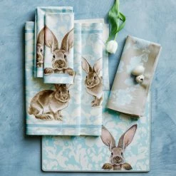 Brighten your Easter celebrations with our vintage-style napkins, decorated with playful portraits of woodland bunnies. Expertly printed for us by a European mill, the design pairs the bunnies with a backdrop of pale blue floral damask for a look that’s both elegant and charming. Pair with other pieces from our Damask Easter Bunny collection, or with any simple white dinnerware.