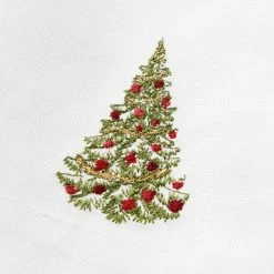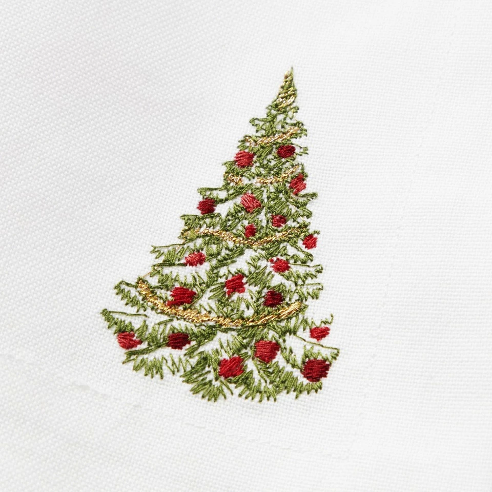 A simple swap of napkins makes everyday table settings Christmas-ready. Woven of sustainably sourced cotton, each napkin features a petite, embroidered Christmas tree. The solid white background makes it a versatile option for a range of dinnerware.