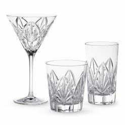 Expertly hand cut, our crystal glassware brings sparkling clarity and unrivalled elegance to the home bar. Inspired by the beauty of flowers, these highball glasses feature diagonal cuts reminiscent of leaves. The set of four is crafted for us at a European glassworks known for uncompromising quality since 1927.