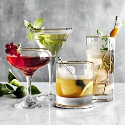 Embellished with handpainted gold rims, our highball glasses add a luxurious touch to entertaining. Ideal for cocktails, water, soda and iced tea, the glasses are suitable for both casual gatherings and formal events.