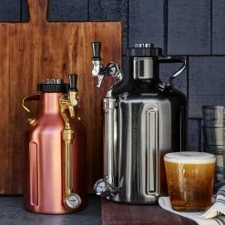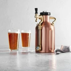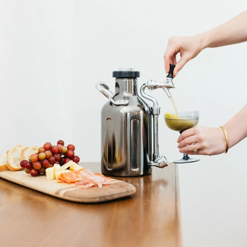 Store and share beer with this stainless steel growler, designed to keep brew fresh and perfectly carbonated for two weeks. Whether you brew your own or buy local microbrews, this vessel lets you enjoy suds at home and on the go, thanks to its vacuum-insulated construction. The tap allows you to pour smoothly down to the last drop, and features a pressure gauge and sight glass so you can monitor your brew.