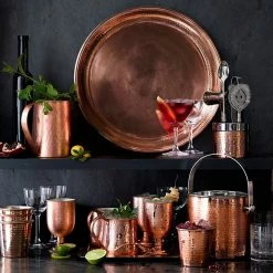 Bring the warmth and lustre of copper to your bar with our elegant copper-plated ice bucket, with a hand-hammered exterior and a brilliant finish. Topped with a stainless-steel lid, the bucket has a watertight, stainless-steel lining that ensures food-safe contact with the ice.