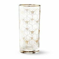 Create a buzz around your home bar. Crafted by Turkish artisans, our highball glasses are adorned with golden honeybees, a handpainted honeycomb pattern and handpainted 24c-gold rims. This highball glass lends elegant shimmer to mixed drinks, cocktails, soft drinks and juice.