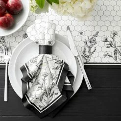Bring guests to the table like bees to honey with our hive-inspired table linen. Charming companions to solid-coloured dinnerware, these napkins are expertly woven at a European mill from premium cotton. Each one features a honeycomb pattern framed with understated wildflowers.