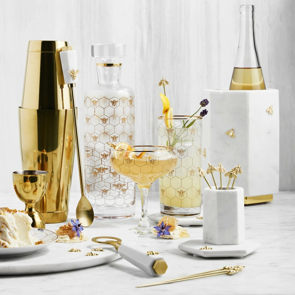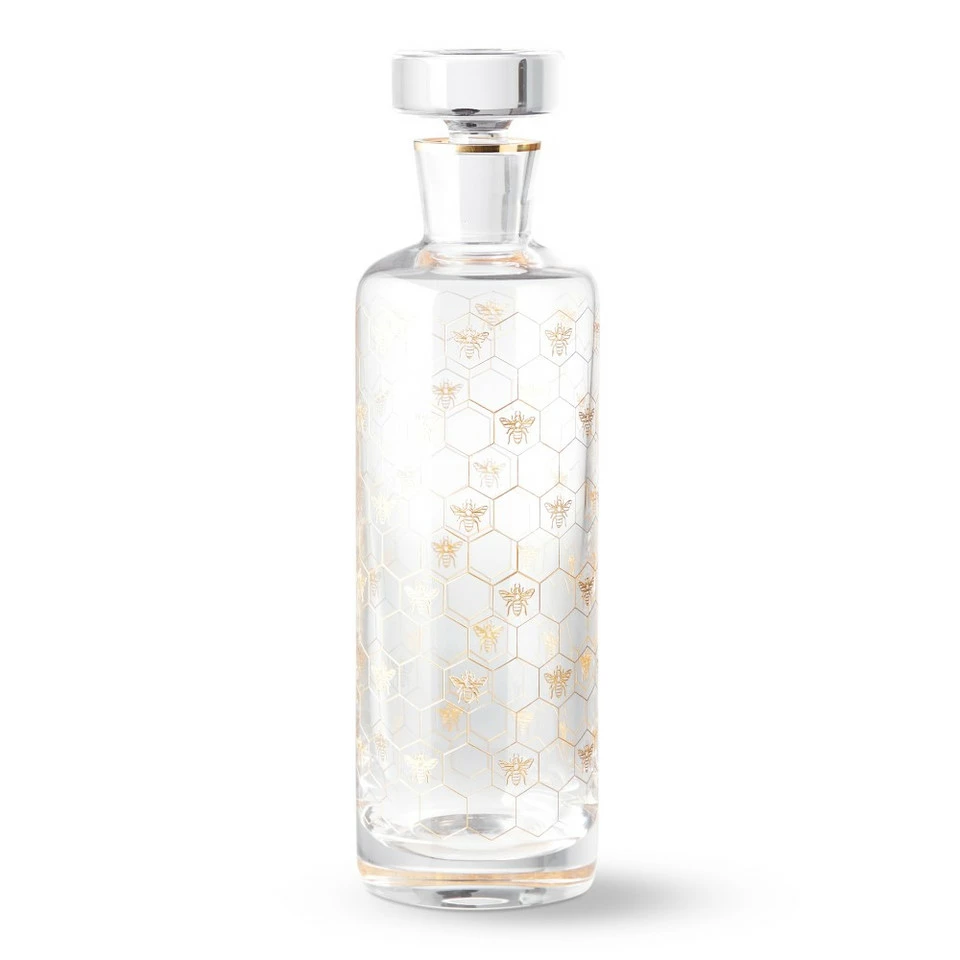 Create a buzz around your home bar. Crafted by Turkish artisans, our mouth-blown decanter is made of lead-free crystalline glass. It’s adorned with golden honeybees, a handpainted honeycomb pattern and a handpainted 24c-gold rim. Topped with a clear glass stopper, the decanter lends elegant shimmer to your favourite spirits.