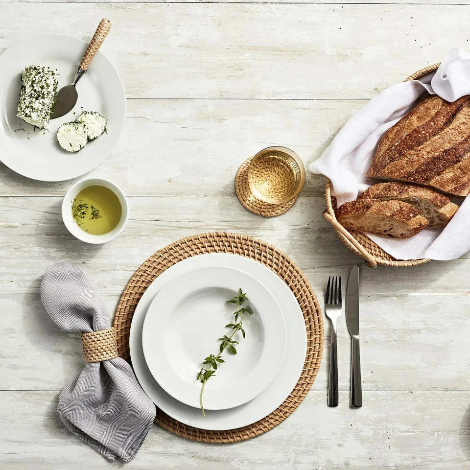 Hand woven of durable rattan, this round charger adds natural colour and texture to the table. Its versatile style creates a neutral backdrop for both white and vibrant dinnerware.