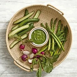 Creating beautiful presentation for your favourite appetisers, our hand-woven server brings natural beauty and texture to the table. Crafted of durable rattan with colour variations that make each piece unique, it holds plenty of chips or bread. The ceramic centre bowl is ideal for salsa, guacamole and other dips.