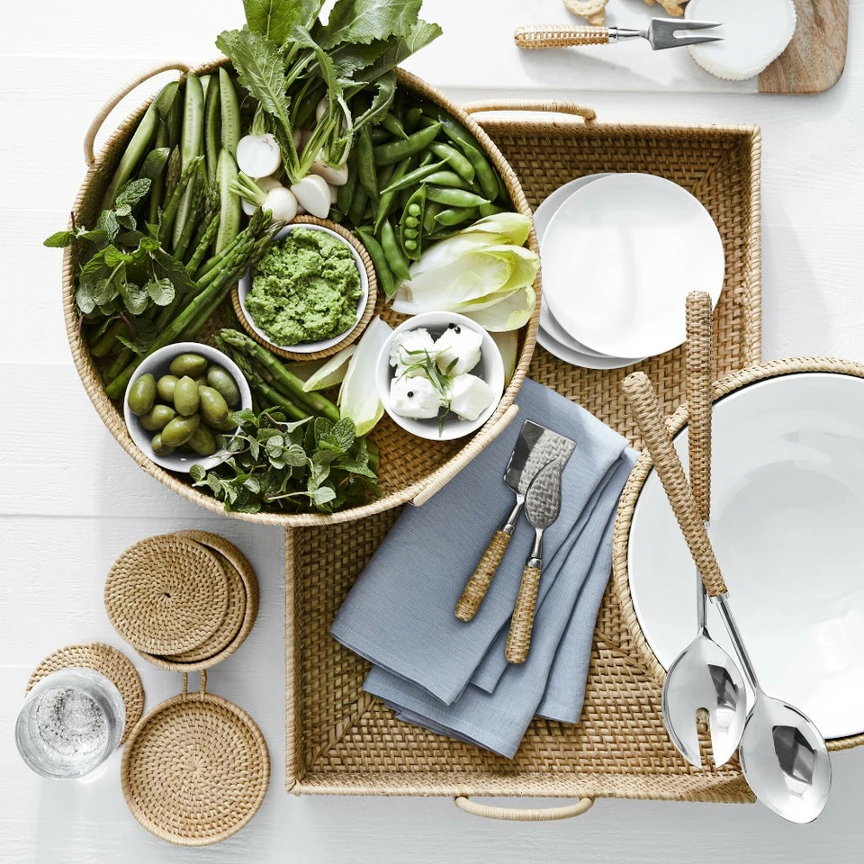- Spot clean rattan server with damp white cloth. Blot to remove excess water. Air-dry.