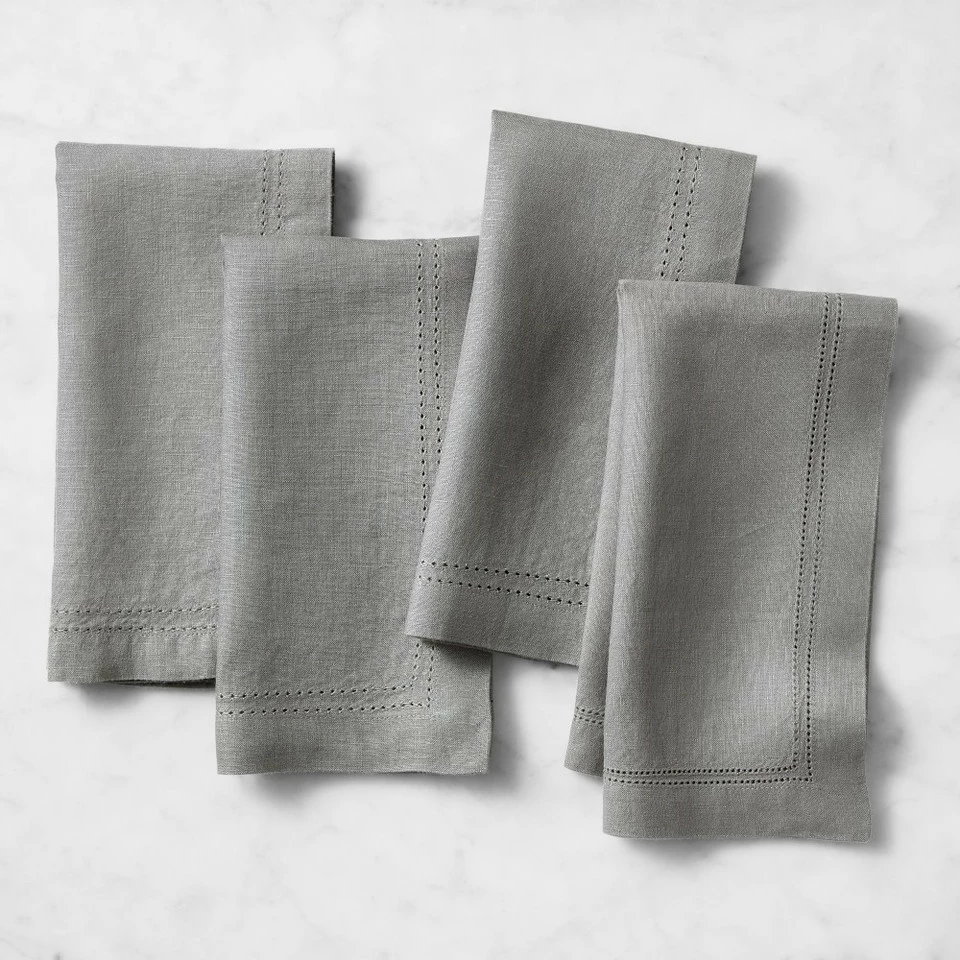 As luxuriously soft as the vintage linen that inspired them, our classic linen dinner napkins have a wonderful heirloom feel. They’re edged with double rows of hemstitching, a traditional needlework technique that creates a delicate openwork border. Like all fine linen textiles, these pieces mellow beautifully over the years, becoming softer every time they’re washed.