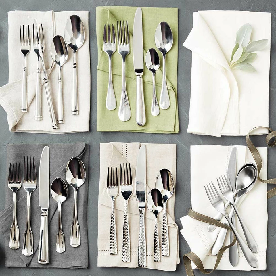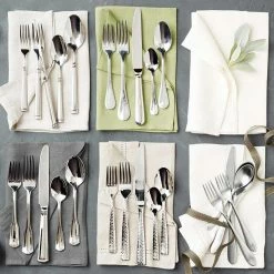 - Five-piece place setting includes a dinner fork, a salad fork, a soup spoon, a dinner knife and a teaspoon.