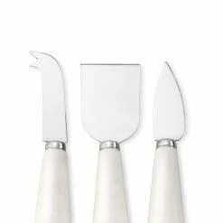 - Set of three includes a pronged knife for spearing and serving cheese, a flat cheese knife for serving and breaking up hard cheese, and a pointed, tear-shaped knife for crumbling and spreading cheese.