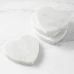 After you raise a toast to love, set your glass down on one of our heart-shaped coasters. Hand carved from white marble, each one-of-a-kind coaster is distinguished by subtle grey veining and the slight variations of the artisan’s touch.