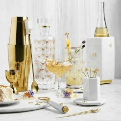 Add a sweet touch to gatherings with a marble cheese board adorned with golden bees. Finished with honeycomb-patterned etching, each hand-carved board is distinguished by rich natural hues and intricate markings. To help fruit and cheese stay cool, simply pre-chill the board in the refrigerator.