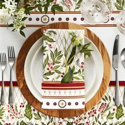 Sprigs of mistletoe – long associated with love and luck – take centre stage on our festive napkins. Created at a venerable European mill, they’re woven of sustainably sourced cotton and finished with mitred corners. Each napkin is framed in crimson and gold to infuse the table with seasonal cheer.