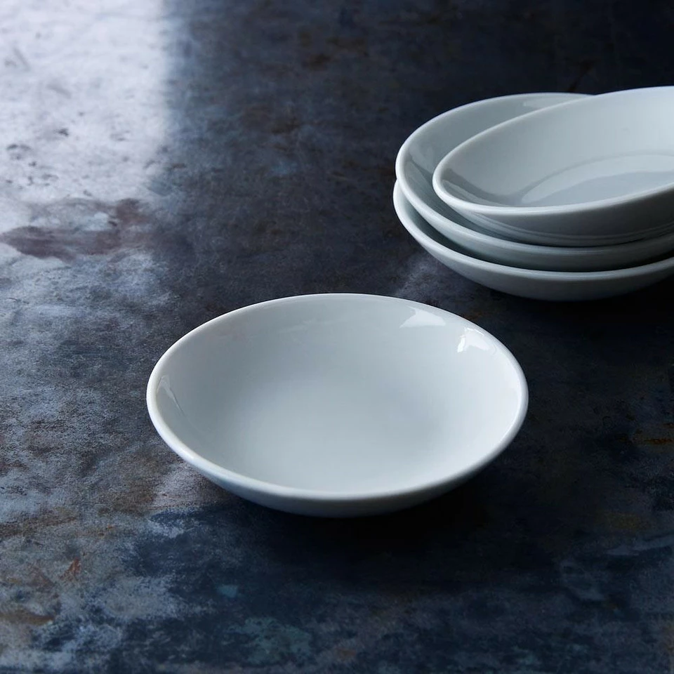 Just right for offering olive oils, seasoned salts and tapenades, our sturdy porcelain dipping bowls are designed for relaxed entertaining and everyday meals. Their classic white colour shows off dips and toppings beautifully — and is great for mixing and matching with other dinnerware and serving pieces.