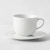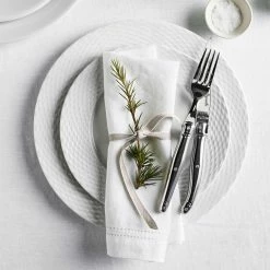 This dinnerware celebrates the beauty in everyday objects; in this case, the willow gathering baskets used in French kitchen gardens. Pillivuyt, the French manufacturer of fine porcelain, developed it for us from one of their archival patterns. New moulds were hand carved by a single artisan in order to ensure consistency of detail. Complementing both casual and formal table settings, the versatile dinnerware is made of porcelain, which is as durable as it is beautiful. Microwavable; oven and dishwasher safe. 28 cm dinner plate. Made in France.