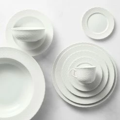 This dinnerware celebrates the beauty in everyday objects; in this case, the willow gathering baskets used in French kitchen gardens. Pillivuyt, the French manufacturer of fine porcelain, developed it for us from one of their archival patterns. New moulds were hand carved by a single artisan in order to ensure consistency of detail. Complementing both casual and formal table settings, the versatile dinnerware is made of porcelain, which is as durable as it is beautiful. 355 ml cap.; 10 cm high. Microwavable; oven and dishwasher safe. Made in France.