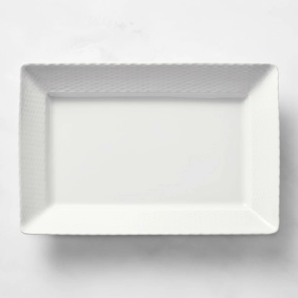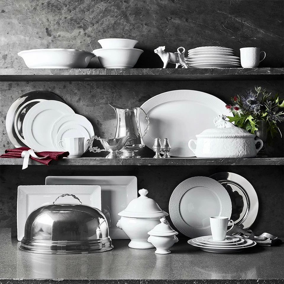 This porcelain dinnerware celebrates the beauty of everyday objects; in this case, the willow gathering baskets used in French kitchen gardens. Pillivuyt – the French manufacturer of fine porcelain – developed it for us from one of their archival patterns. New moulds were hand carved by a single artisan in order to ensure consistency of detail. Complementing both casual and formal table decor and dinnerware patterns, the versatile platter has a modern profile that frames every cuisine beautifully.