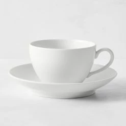From France, this white porcelain dinnerware is as sturdy as it is stylish. The cups and saucers feature a classic coupe design with a gentle contour and sleek rim. Thanks to an innovative formulation of various clays, the porcelain’s delicate appearance belies its strength. Dressed up or down with formal or casual table linens, cutlery and glassware, this versatile dinnerware coordinates easily with patterned pieces. They’re made in France by Pillivuyt, a company respected for fine porcelain tableware since 1818. Microwavable and dishwasher safe. 236 ml cup and 16 cm saucer.