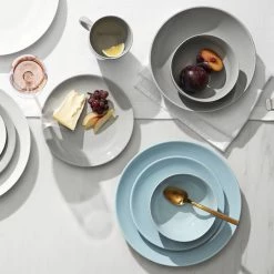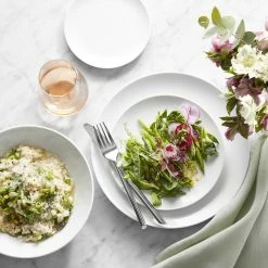 From France, this porcelain dinnerware is as sturdy as it is stylish. The dishes feature a classic coupe design with a gentle contour and sleek rim. Thanks to an innovative formulation of various clays, the porcelain’s delicate appearance belies its strength. Dressed up or down with formal or casual table linen, cutlery and glassware, this versatile dinnerware coordinates easily with patterned pieces. They’re made in France by Pillivuyt, a company respected for fine porcelain tableware since 1818.