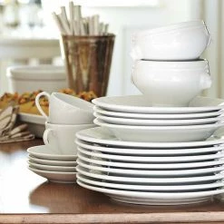 From France, this porcelain dinnerware is as sturdy as it is stylish. The dishes feature a classic coupe design with a gentle contour and sleek rim. Thanks to an innovative formulation of various clays, the porcelain’s delicate appearance belies its strength. Dressed up or down with formal or casual table linen, cutlery and glassware, this versatile dinnerware coordinates easily with patterned pieces. They’re made in France by Pillivuyt, a company respected for fine porcelain tableware since 1818.