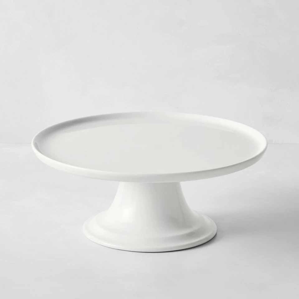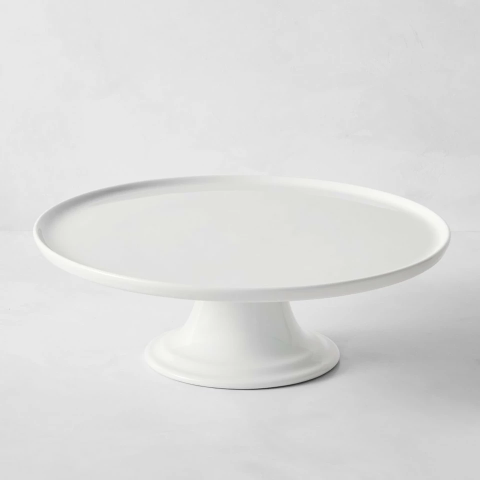Like those seen in French patisseries, this cake stand is made for elevating all kinds of baked goods, from whole cakes to assorted cookies and pastries. Or use it for serving savoury bites like hors d’oeuvres, cheeses and tea sandwiches. Made of white porcelain with a gently raised rim, it creates an eye-catching display. Made in France by Pillivuyt, a producer of porcelain tableware since 1818.