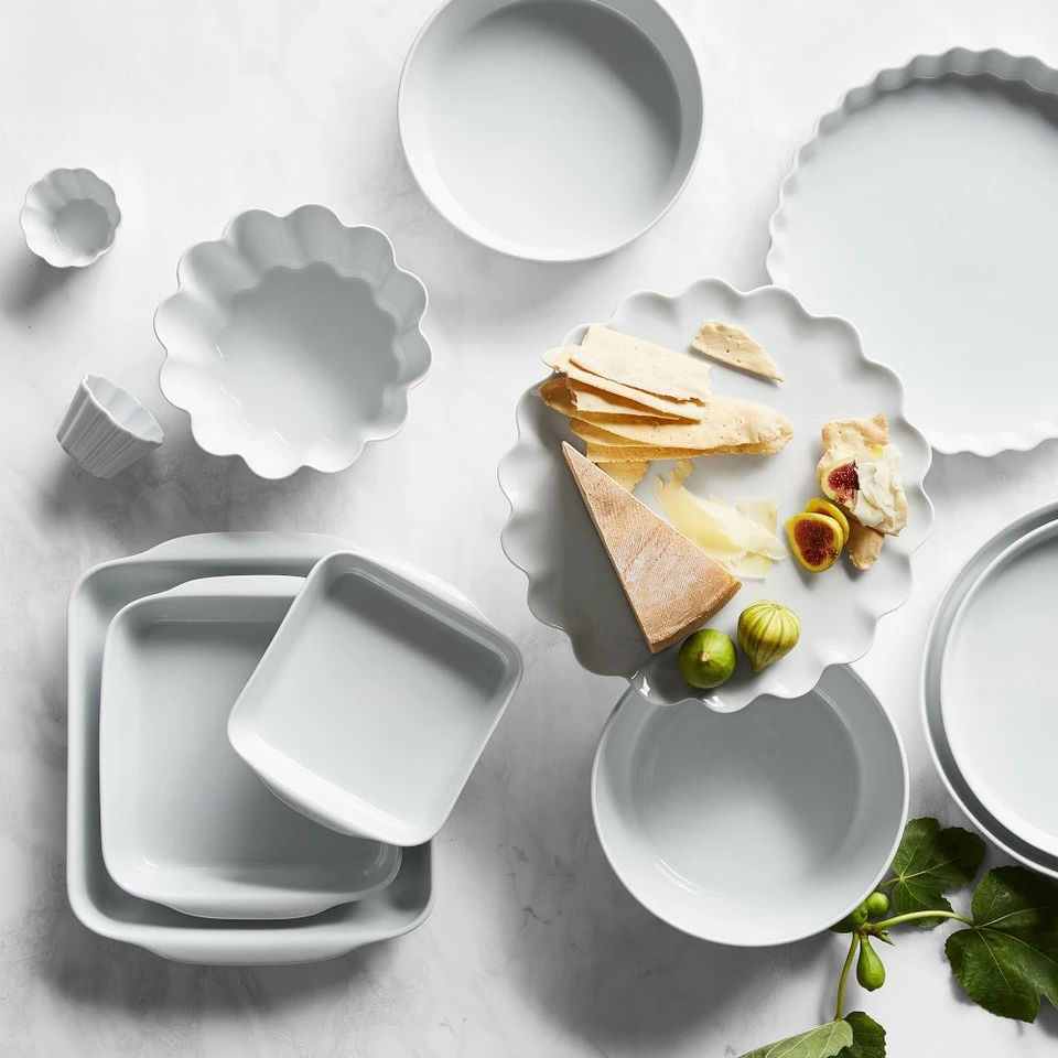 Our glazed bakers turn out beautiful casseroles, cobblers, crisps and more. Durable and chip resistant, they are the perfect choice for oven-to table service and they conveniently nest for compact storage. They’re made in France by Pillivuyt, a producer of porcelain tableware since 1818.
