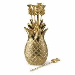 - Gold-plated, pineapple-topped picks for skewering cocktail garnishes in style.