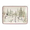 A glimpse from a classic snow village lends nostalgic charm to our platter, featuring snow-capped pine trees, a gingerbread-inspired cottage and bundled up snowmen. The platter illustrates delicate flecks of freshly falling snow and captures the snowmen’s delight in a whimsical style friends and family will adore. Crafted of glazed stoneware with rimmed detailing, the platter brings this beloved snowy icon to the table.