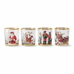 Inspired by the legendary 19th-century poem, “A Visit from St. Nicholas,” these double old-fashioned glasses serve seasonal refreshments with charm. Crafted of durable glass with gold rims, they coordinate with our ‘Twas dinnerware and feature four Christmas scenes rendered in colourful detail.