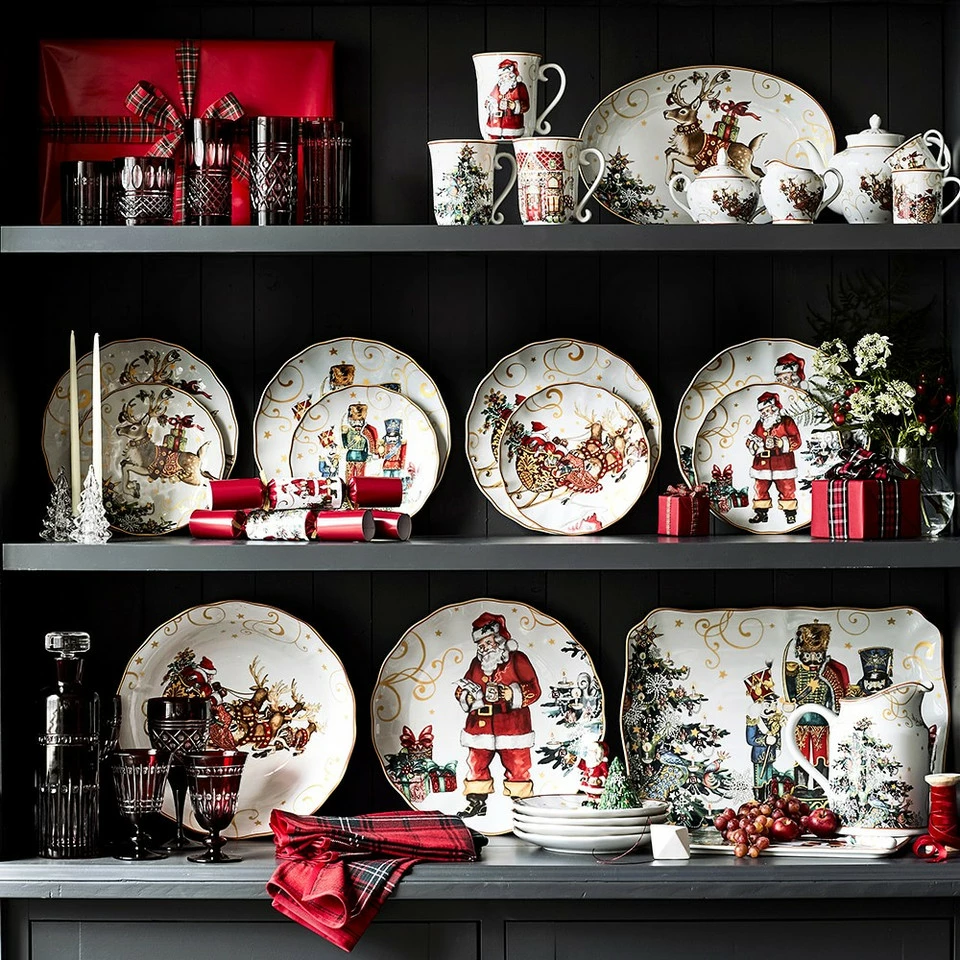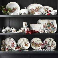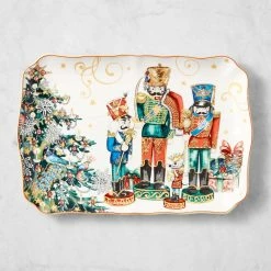 Celebrate the magic of the season with tableware inspired by the legendary 19th-century poem “A Visit from St. Nicholas.” On this collectable platter, vintage-style artwork depicts a colourful scene of exquisitely dressed nutcrackers standing guard. Bordered with a scalloped rim, our durable porcelain platter makes a beautiful presentation for main courses or festive cookies and desserts at your seasonal celebrations.