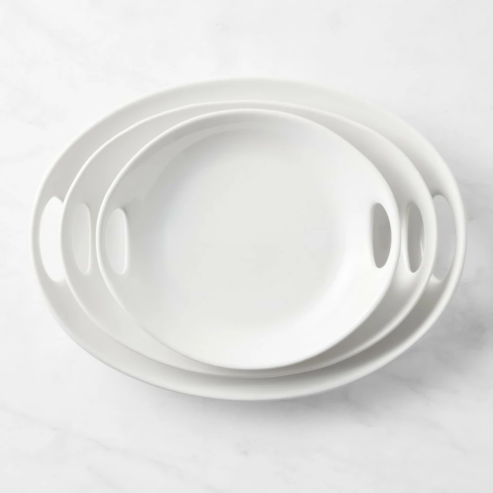 Clean, classic lines and a go-with-everything white colour make our sturdy, affordable serving pieces the perfect choice for relaxed gatherings with family and friends. Our versatile, white earthenware platters show off your food beautifully and mix and match easily with other dinnerware and serving pieces. Count on these platters to provide gorgeous presentation for every course of a great meal – from appetisers, sides and main courses to decadent desserts.