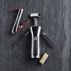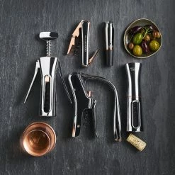 The world’s best sommeliers and wait staff rely on compact folding corkscrews like this one to open everything from simple table wines to the rarest vintages. Our efficient stainless-steel opener combines beauty with functionality by adding polished copper accents.