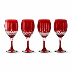 Ideal for celebrations and festive gatherings all year long, our vintage-inspired glassware combines hand-cut, light-catching patterns with a deep red hue. Each of the four sparkling glasses is cut with a different antique geometric pattern, making it easy for guests to keep track of their wine.